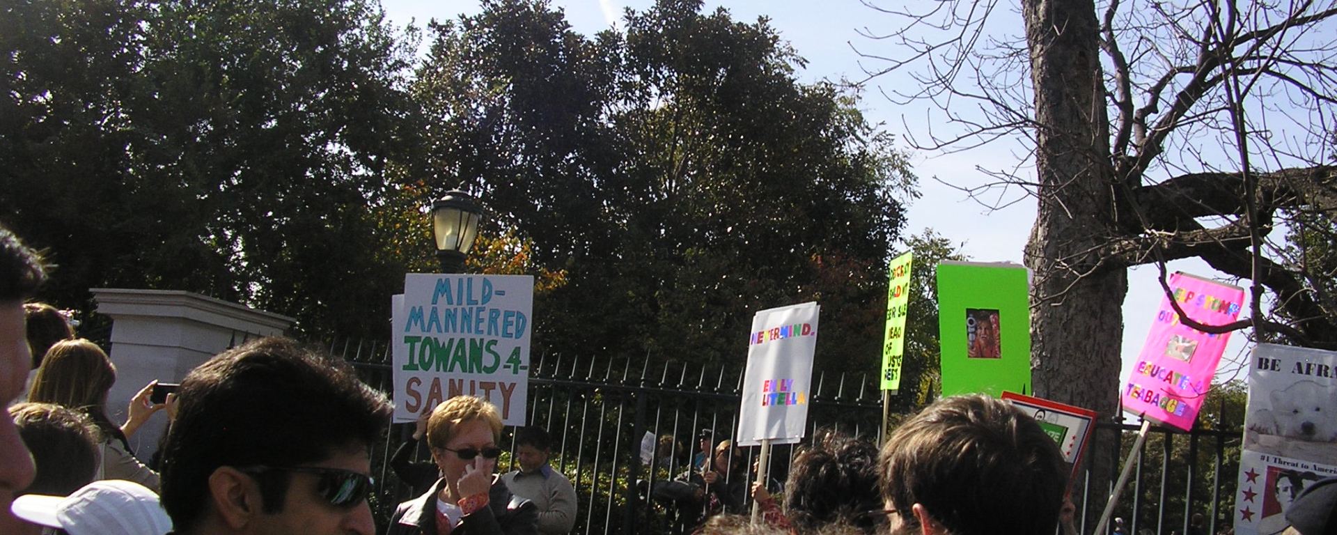 The rally was intended to get people to lighten up. Some protesters seemed to have missed that memo, and had made posters with serious statements on them. We groaned every time we walked by them. In the end, you could say we didn’t even attend the rally, since we never saw the stage or heard Jon Stewart or Stephen Colbert. But, in our opinion, we were there for the important part: making fun of people who take things too seriously.