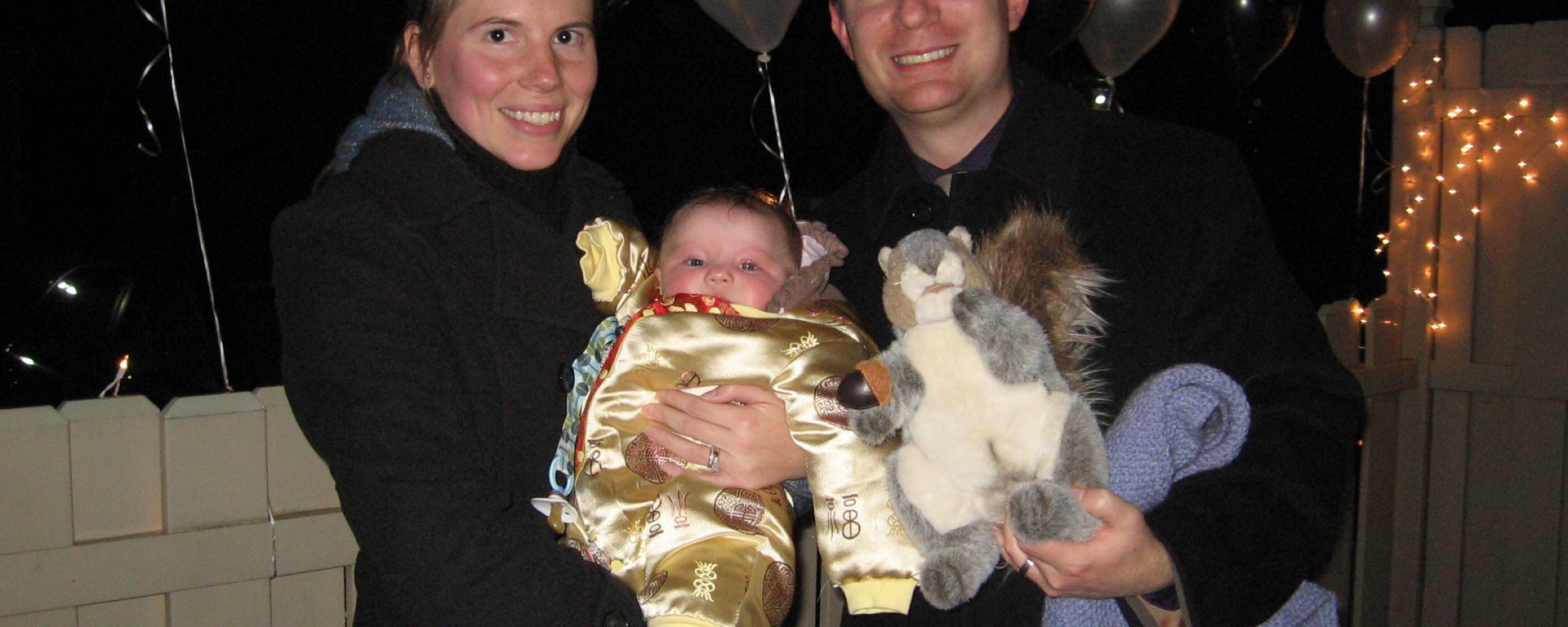 Fiona was born on Thursday, 15 July, in Washington, D.C., which means that she was born without a voting representative in Congress. We are amazed by how quickly she has grown and learned new things. At her last doctor’s appointment, she weighed 13 pounds, 14 ounces and was 23¾ inches long. She loves her pacifier, reading books, modern art (she’s not an art connoisseur so much as she’s interested in bold shapes and contrasting colors), and her best friend, Dinky. Dinky is a squirrel puppet. We named him after the Dinky Train in Princeton, New Jersey. Fiona had her first solid food on Thanksgiving Day, and she just mastered the Greek alphabet.