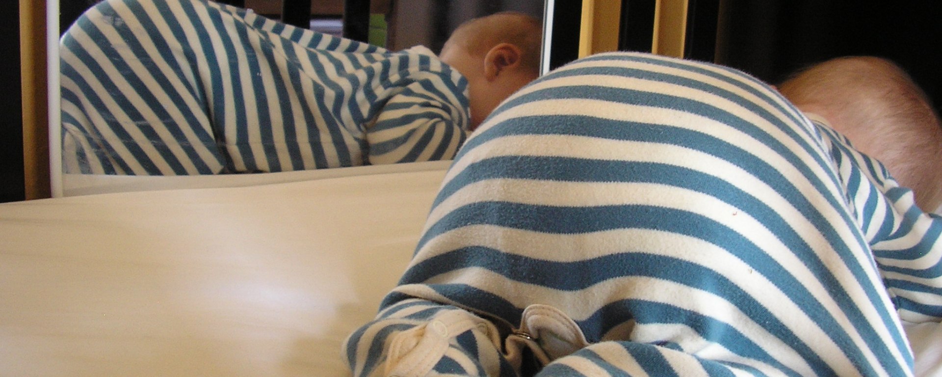 One last thing. This just happened a few hours ago. Fiona has this fleece—you’ve all seen it; it’s the dark green one her cousins used to wear. Well, it’s now Fiona’s best friend (alongside her pacifier). In the wintertime, she got used to always wearing it when she went to sleep. These days, though, it’s far too warm to wear a fleece, so we just put her in pajamas and plop her in her crib. Sometimes we let her hold the fleece until she falls asleep, and then we take it away for safety. Tonight, I put her in her crib and figured she could probably do without the fleece, so I put it on the chair next to her crib. She fussed and cried for a little while after I closed the door, and I thought I might have to go in and convince her to lie back down, but she got quiet pretty quickly. About half an hour later, I went in to look at her. She had gotten up, reached through the bars, found the fleece (in the dark!), and pulled it into the crib. She was sleeping soundly with her arms around her friend.