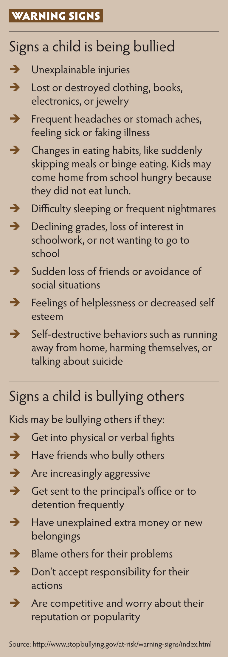 Bullying warning signs