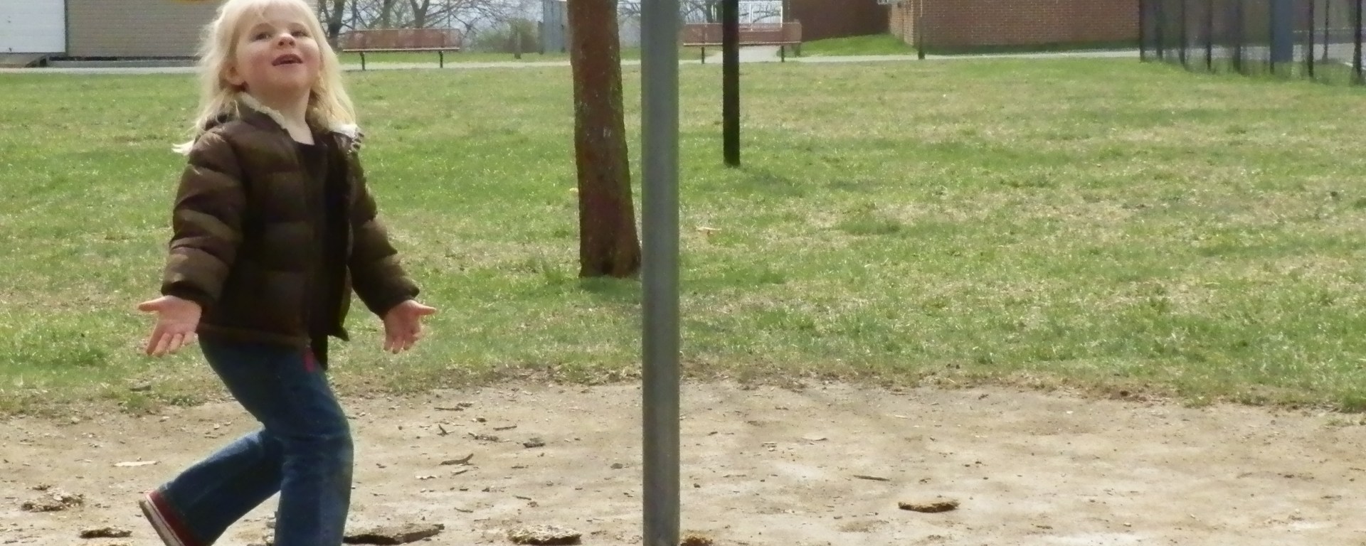 On a recent train adventure—to High Bridge, New Jersey, at the end of NJ Transit’s Raritan Valley Line—Dustin and Fiona had a picnic at a schoolyard playground. While there, Fiona learned about the curious sport of tetherball. This is the sort of thing that can keep a three-year-old occupied for hours. Well, a few minutes, anyway—which is longer than just about anything else holds their attention.
