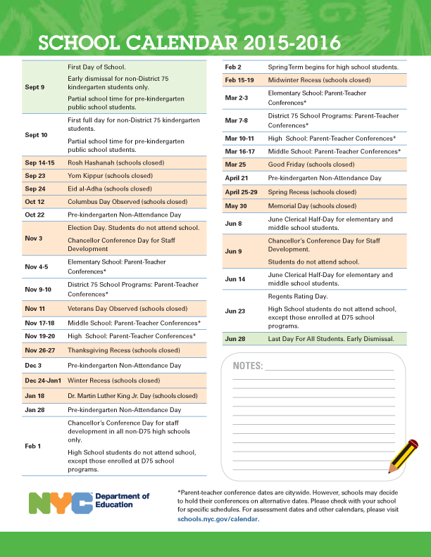 2015–16 New York City schools calendar