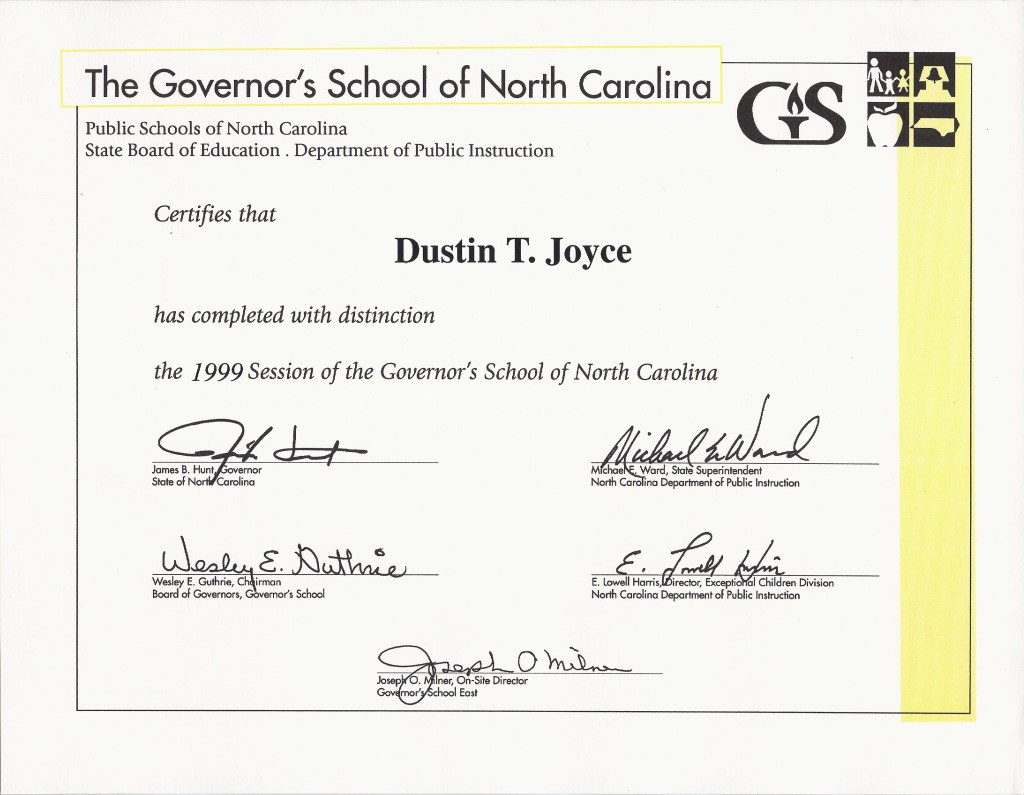 Selection to the Governor’s School of North Carolina, 1 April 1999