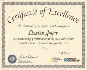 National Geography Bee 1995: North Carolina state level, 3rd place