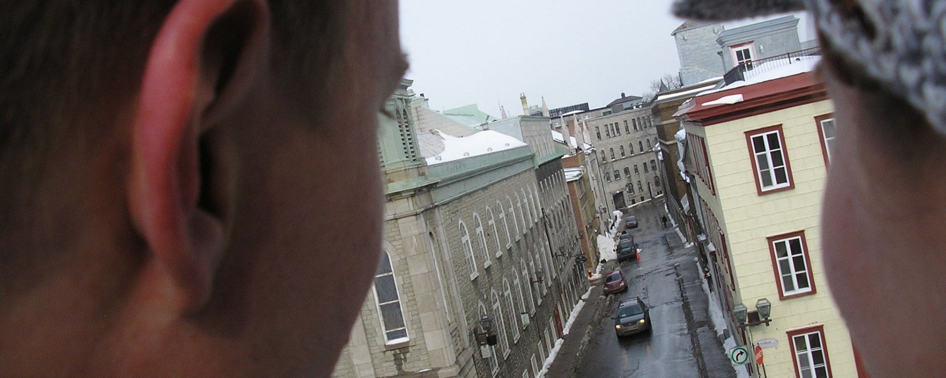 We filled our time exploring the quaint streets and alleyways of one of North America’s oldest cities (Québec City was, in fact, celebrating the 400th anniversary of its founding the year we were there). Susan made a snow angel on the Plains of Abraham, where the British claimed final victory over the French in their conquest of Canada. We rode a toboggan on a run that had been set up on the Terrasse Dufferin, right in front of the Château Frontenac. And we pelted the invaders from atop the Porte Kent in Québec’s city wall. (Of course, as Americans in Canada, we were the invaders.)