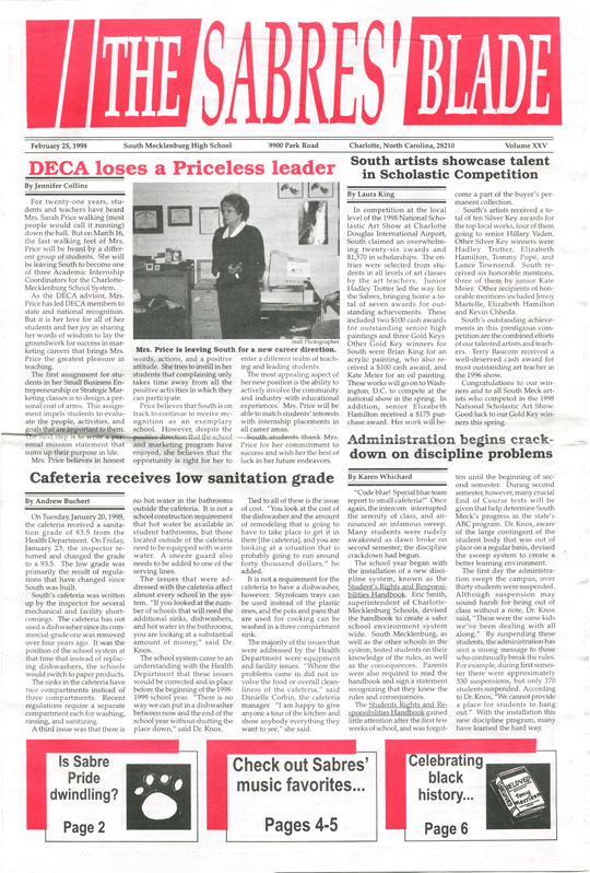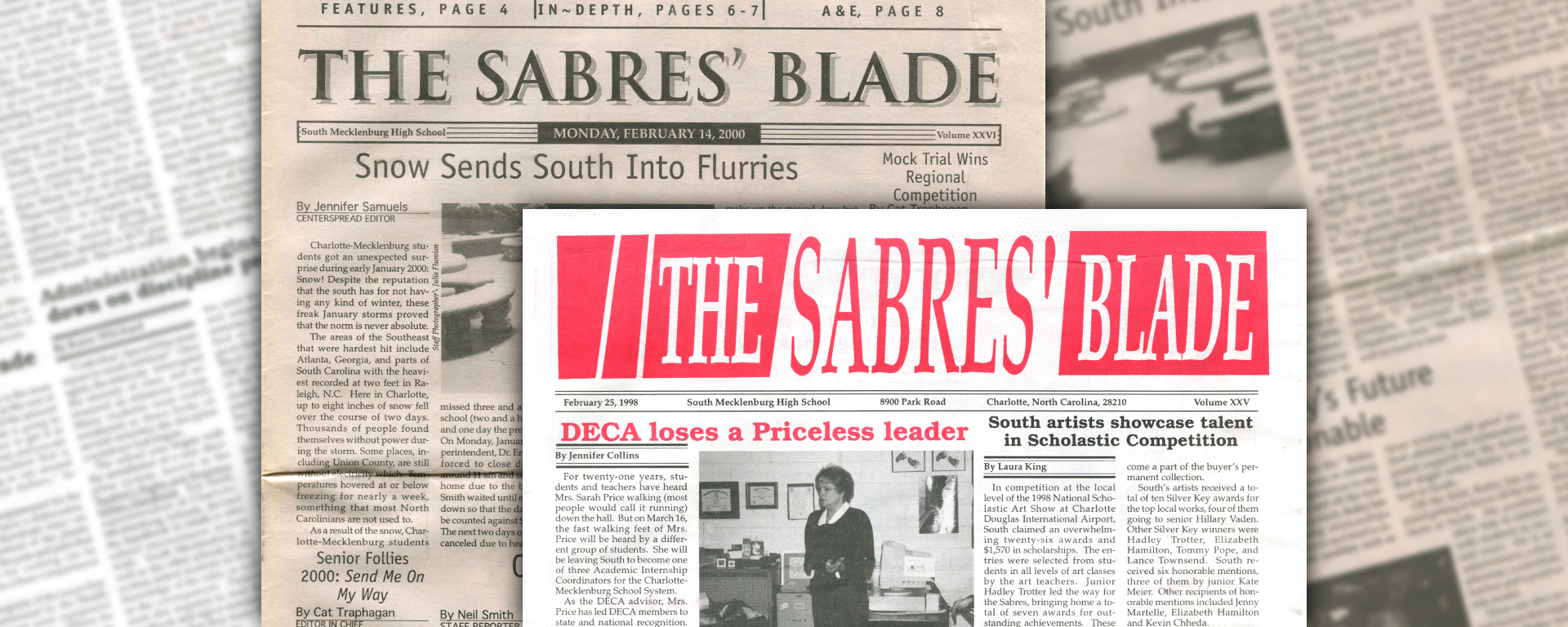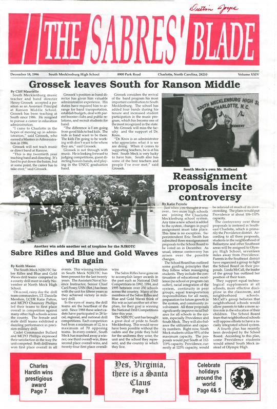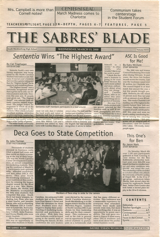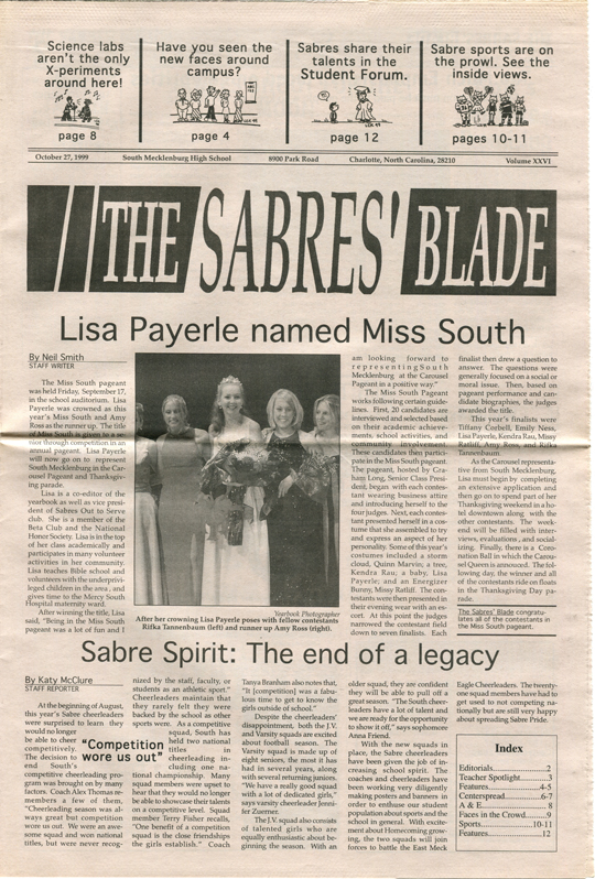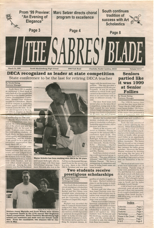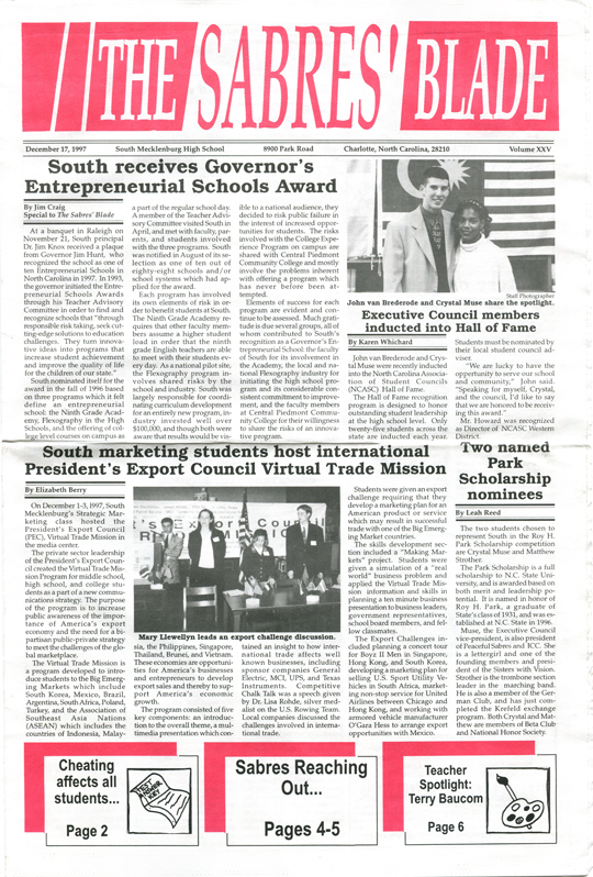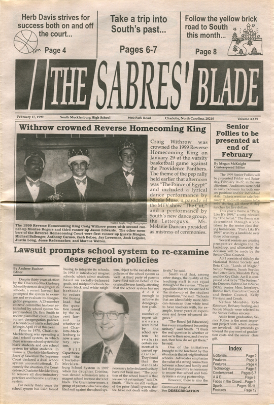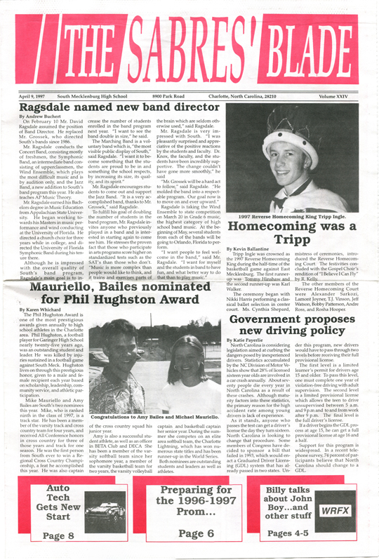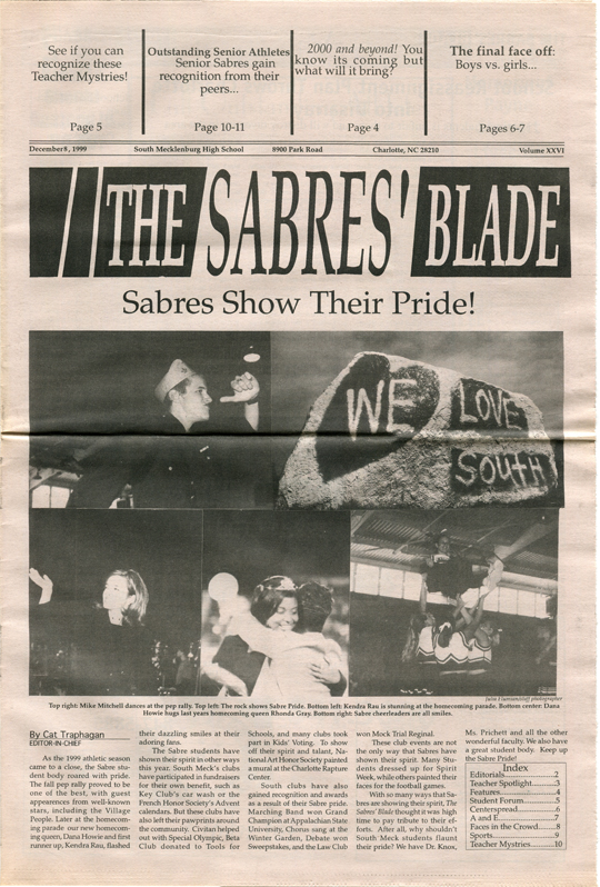 The Sabres’ Blade was our student newspaper. There were 23 issues published during our time at South Meck — 6 each in our freshman, sophomore, and junior years, and 5 our senior year — and I still have the complete collection. I have digitized it and I am sharing it here with you.