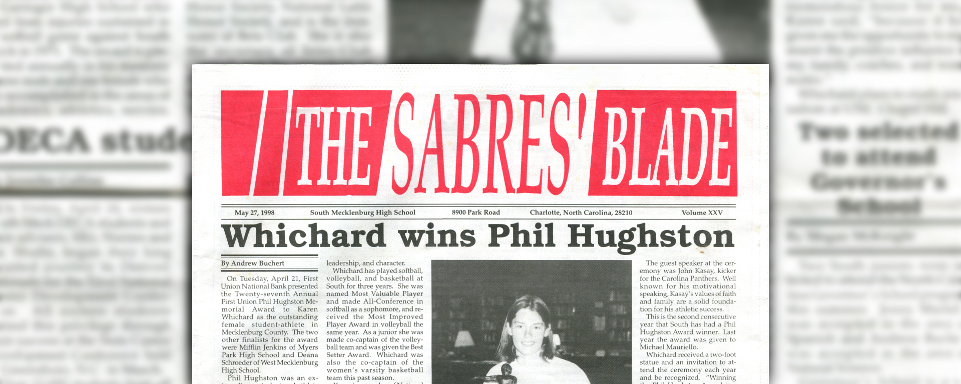 The 27 May 1998 issue of The Sabres’ Blade, the student newspaper at South Mecklenburg High School, Charlotte, North Carolina, USA.