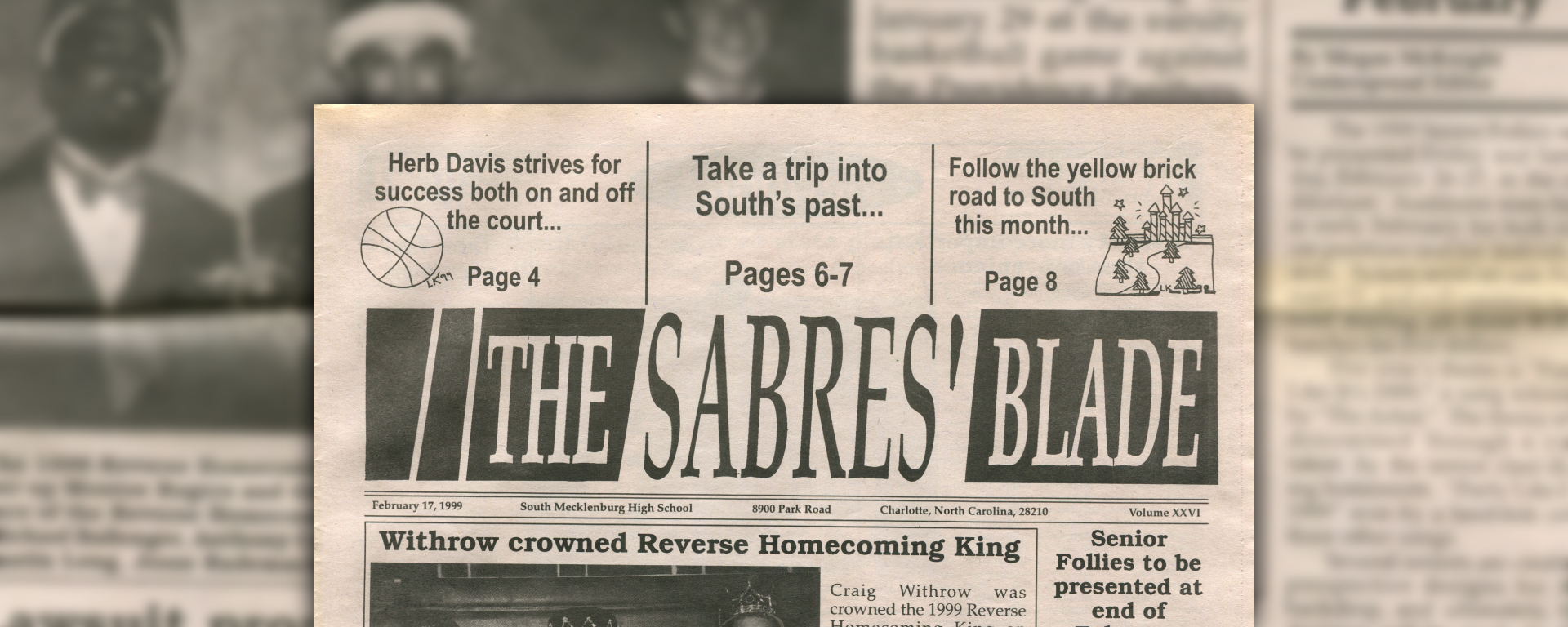 The 17 February 1999 issue of The Sabres’ Blade, the student newspaper at South Mecklenburg High School, Charlotte, North Carolina, USA.