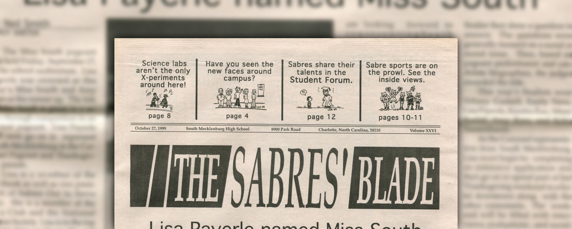 The 27 October 1999 issue of The Sabres’ Blade, the student newspaper at South Mecklenburg High School, Charlotte, North Carolina, USA.