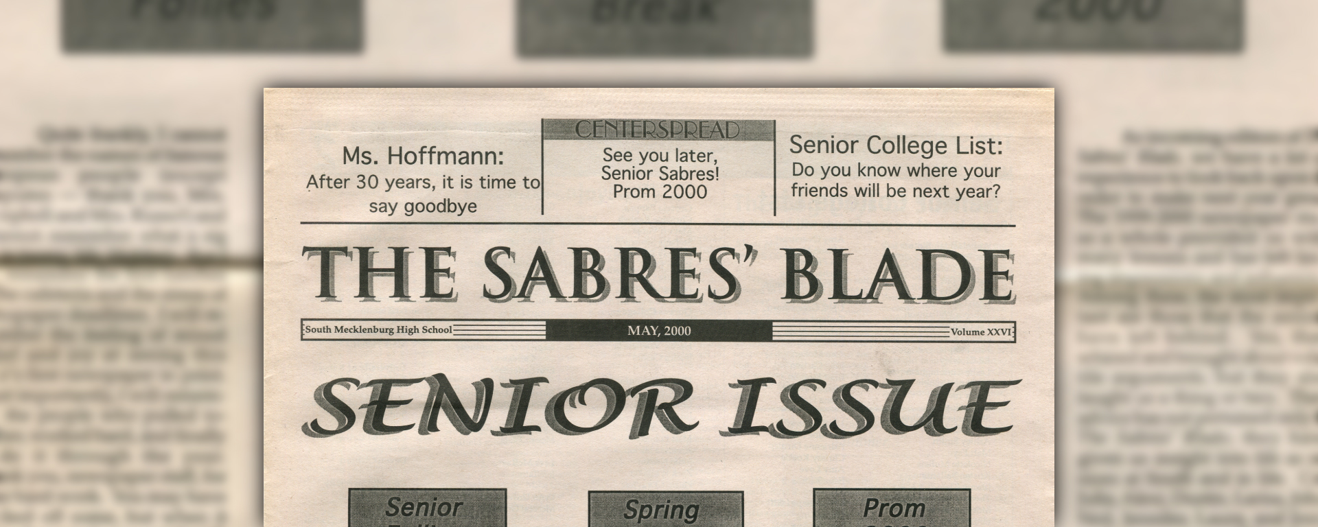 The May 2000 issue of The Sabres’ Blade, the student newspaper at South Mecklenburg High School, Charlotte, North Carolina, USA.
